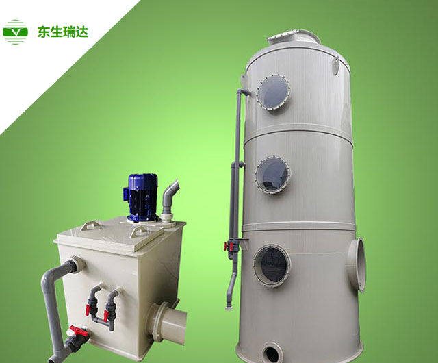 工作原理:自工业制程中所产生的废气,经收集系统导入废气洗涤塔后,流经填充层中,洗涤液自喷嘴均匀喷洒于填充层之表面以保持湿润,同时废气与洗涤液在充分湿润之填充层相互接触,借由物理与化学吸收作用将废气中之污染吸收于洗涤液中,达成去除污染物质之目的,然后此包含水份之气体经过除雾器以移除多余之水份,经过洗涤塔洗净并移除水份后的洁挣气体即可直接排放至大气中,而所移除之水分被导回循环洗涤液系统重新回收使用。
